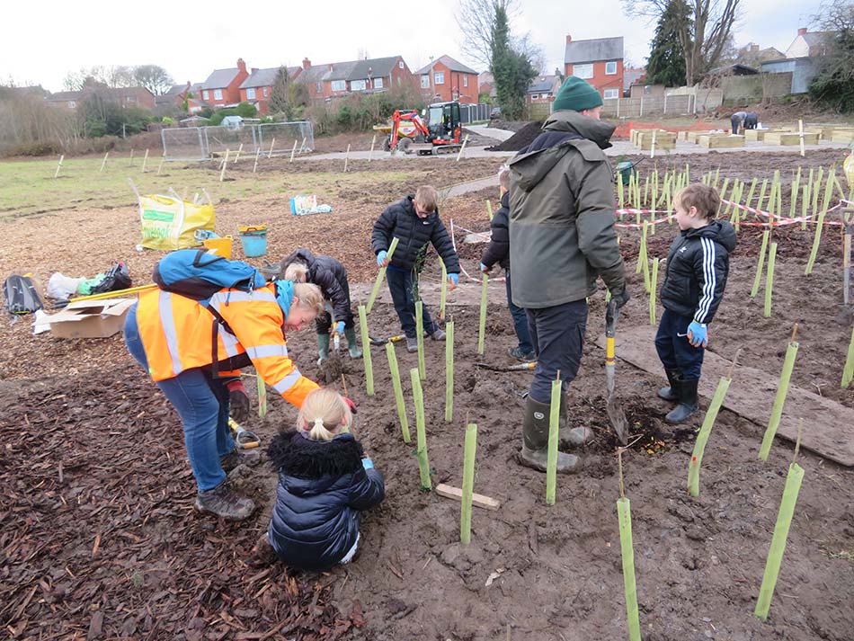 Members of the school Eco Council have been helping to plant trees in the village. This is part of the Little Forests project with 'Woodswork CIC' in partnership with Wrexham Council.